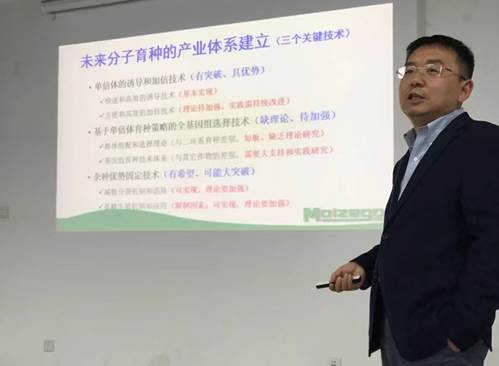严教授以玉米相关研究为例,介绍了单细胞测序技术在植物研究领域的应用。报告用四个小故事回答了以下四个问题:第一重组交换问题、第二重组交换中雌雄配子表现的差异、第三GC and NCO、第四应用单细胞测序技术理解单倍体诱导问题。第一个故事,李响同学创造性地解决了单细胞测序技术的基础问题,即雄配子四分体期的细胞壁的破除和分离四分体等技术难题,最终发现了高等生物的雄配子四分体在重组交换中的干涉现象以及干涉规律;第二个故事,本科学生罗成创新性地引入物理学中的“Beam-Film model”,来解释雌配子在交叉互换过程中发生正干涉的强度更强,发生重组的频率更少。第三发现NCO(No Cross Over)重组模式和CO(Cross Over)重组模式可能在基因编码、分子进化和自然选择中起着完全不同的作用;第四单倍体诱导方面的研究,克隆一个影响单倍体诱导的关键基因PLA1,猜想雌雄配子受精过程中需要雄配子提供某种化学引号来完成受精的模型。并大胆展望了通过单细胞测序技术研究的发展,抑制减数分裂来产生孤雌生殖,从而保留杂种优势的育种新技术的前景。