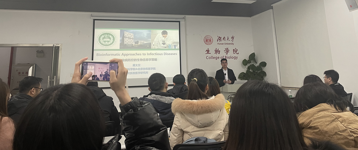 近日中国医学科学院生物医学大数据中心主任蒋太交教授应邀来色情进行学术交流,并做题为“传染病防控的生物信息学策略” 的精彩学术报告。