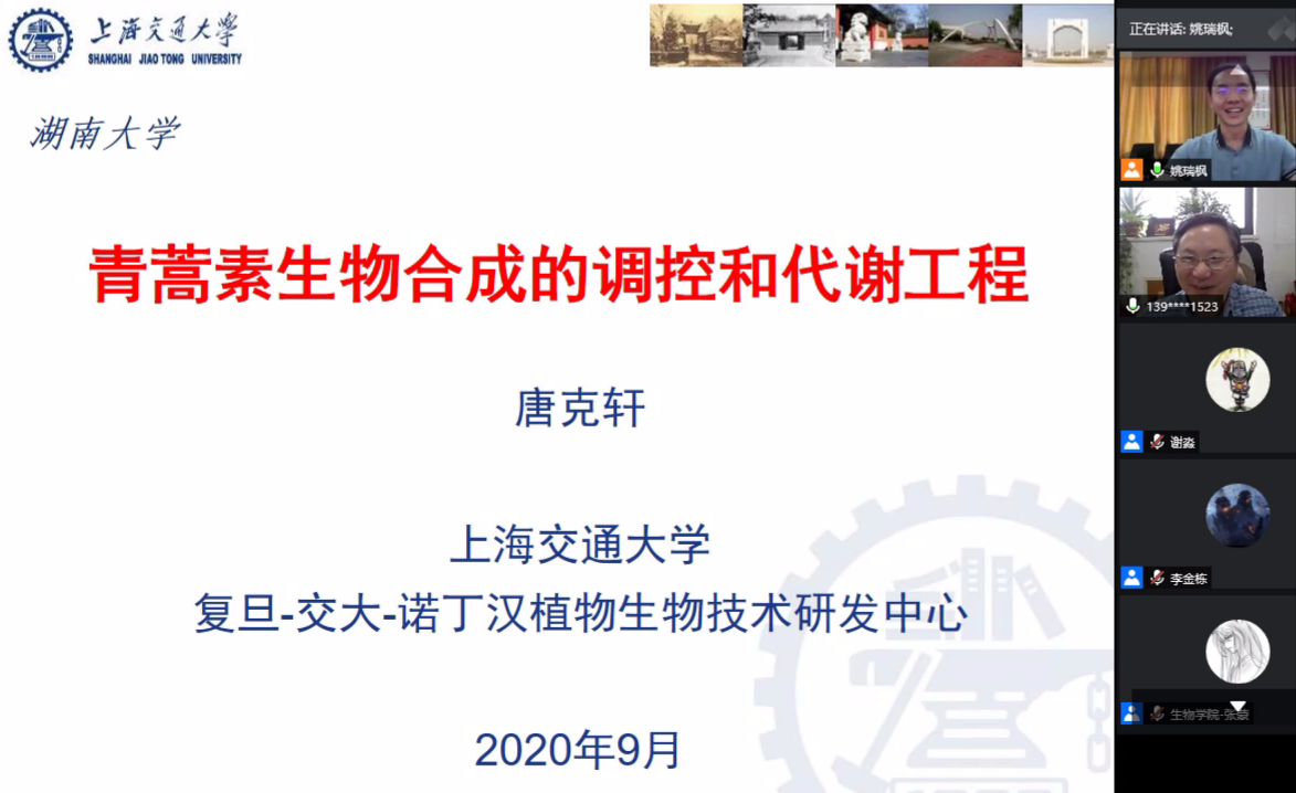 姚瑞枫教授邀请,在线作《青蒿素生物合成的的调控和代谢工程》的精彩报告,并与色情