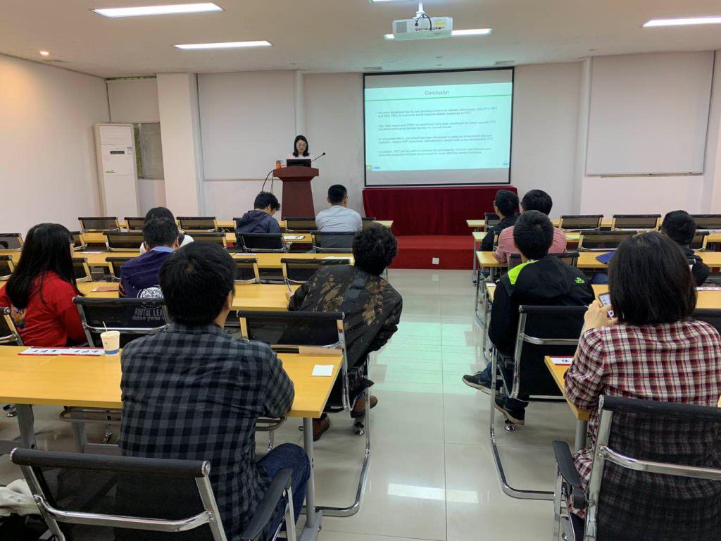 此次报告进行了近一个半小时,针对唐玮博士在纳米医药的光声诊疗研究成果,色情师生与唐玮博士进行了深入的交流与探讨,报告现场气氛热烈友好。唐玮博士的报告开阔了色情师生的学术视野,受到大家一致好评。