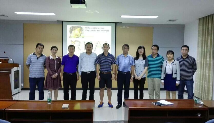 2015年10月16日上午,美国肯塔基大学(University of Kentucky)周序国教授应邀来色情进行学术交流,为学院师生作了题为“ RNA interference in agriculture: challenges and promises”的学术报告。周博士在报告中生动地讲解了 RNA干扰技术在农业病害防治、生物医学领域等方面的发展现状及应用,非常热情地回答了各位老师和同学的提问,并给大家介绍了肯塔基大学的研究方向和背景。会后,周博士参观了色情植物功能基因组学与发育调控湖南省重点实验室,与有关教师就科研合作、学生培养开展了交流。此外,湖南省农科院植物保护研究所所长刘勇研究员、书记张德咏研究员也应邀一同前来听取报告和参加了师生的座谈。