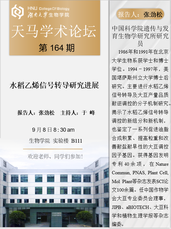 天马学术论坛 第164期-中科院遗传所 张劲松研究员