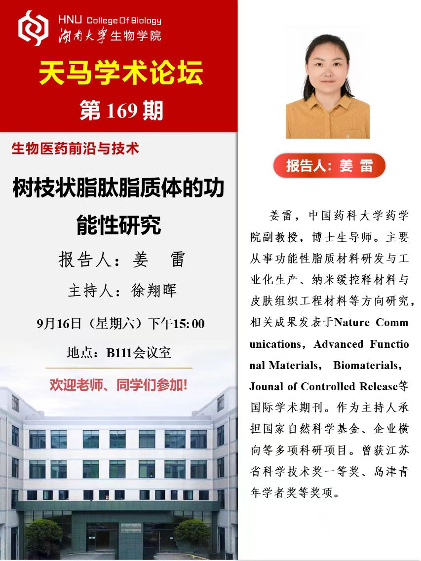 天马学术论坛 第169期-中国药科大学 姜雷副教授