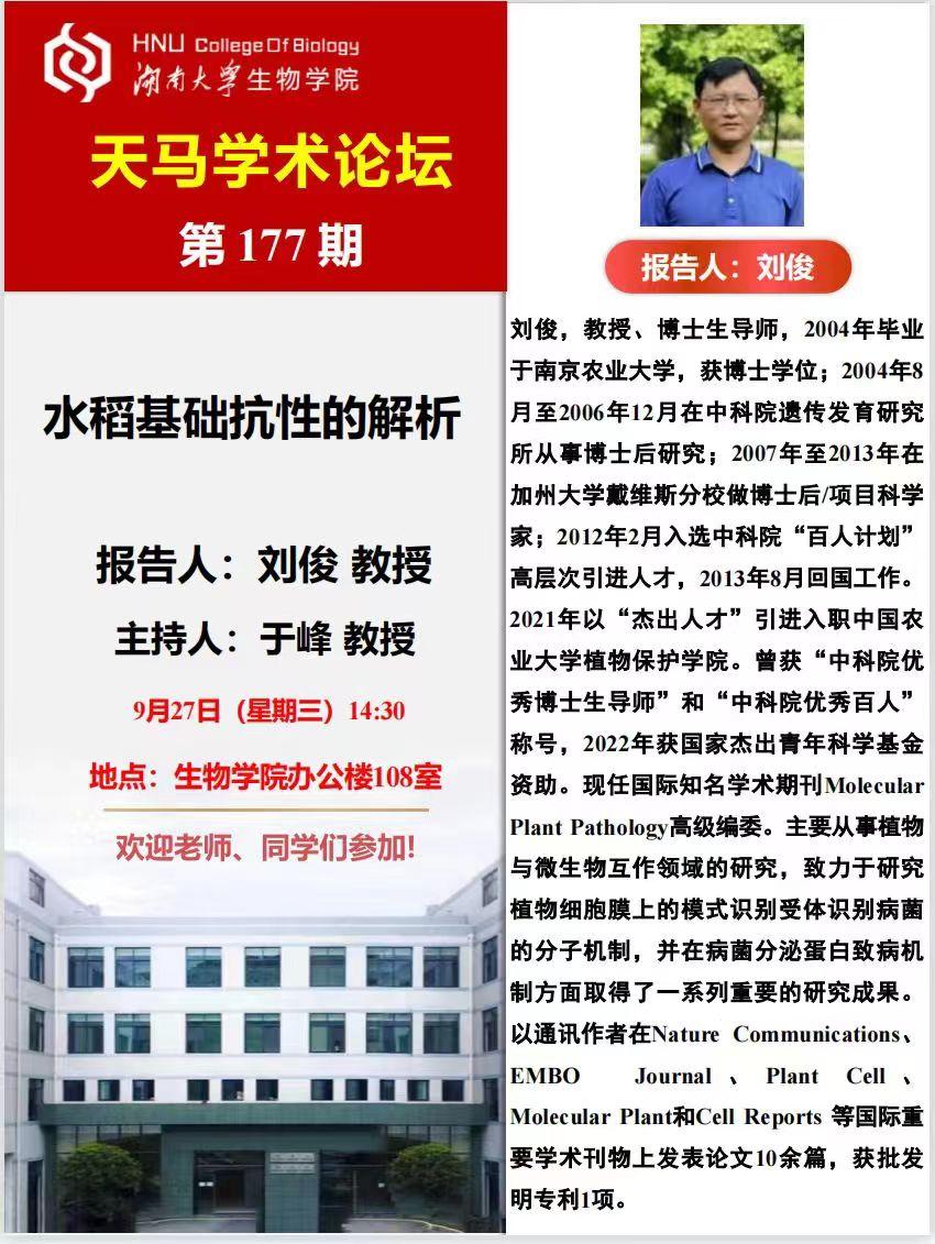 天马学术论坛 第177期-中国农业大学 刘俊教授