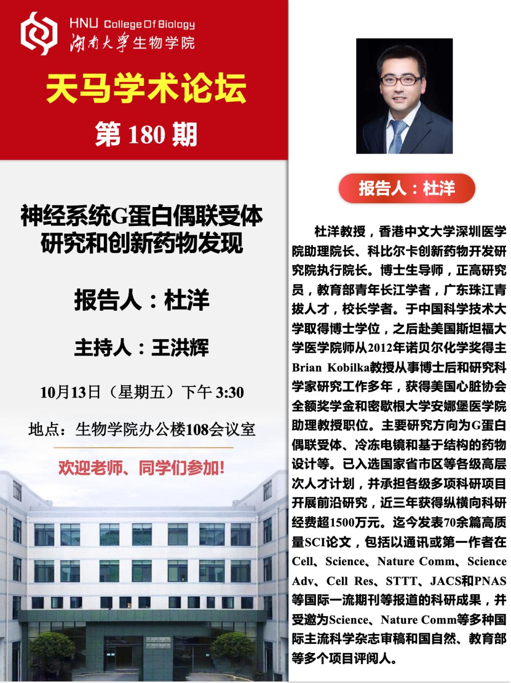 天马学术论坛 第180期-香港中文大学深圳医学院 杜洋教授