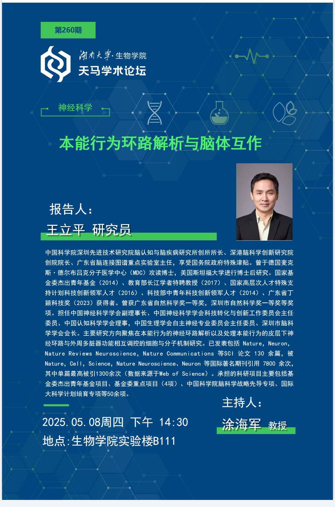 天马学术论坛 第260期 中国科学院深圳先进技术研究院 王立平 研究员
