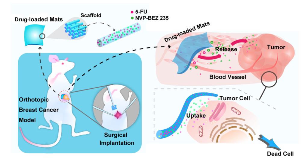 图:3D打印的药物支架用于抑制乳腺癌的生长和转移。