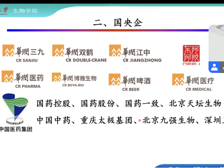的同学们介绍了一些国央企和私企,分享了这些企业的基本信息、企业文化以及岗位薪资等信息。而后又详述了人才引进、选调生等就业途径的要求和特点。汪朝阳师兄毫无保留的信息分享,使得同学们对当前生物专业的就业形势和环境有了更加充分的了解。