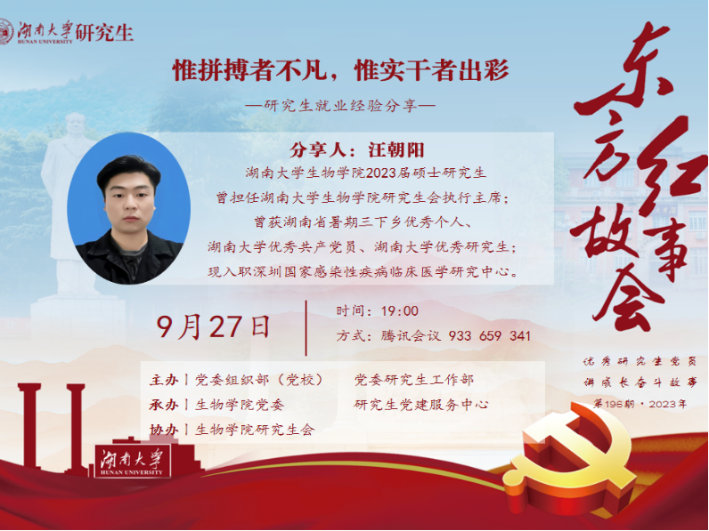 研究生“东方红故事会”第196期活动通过腾讯会议线上举行。活动邀请嘉宾2023届色情