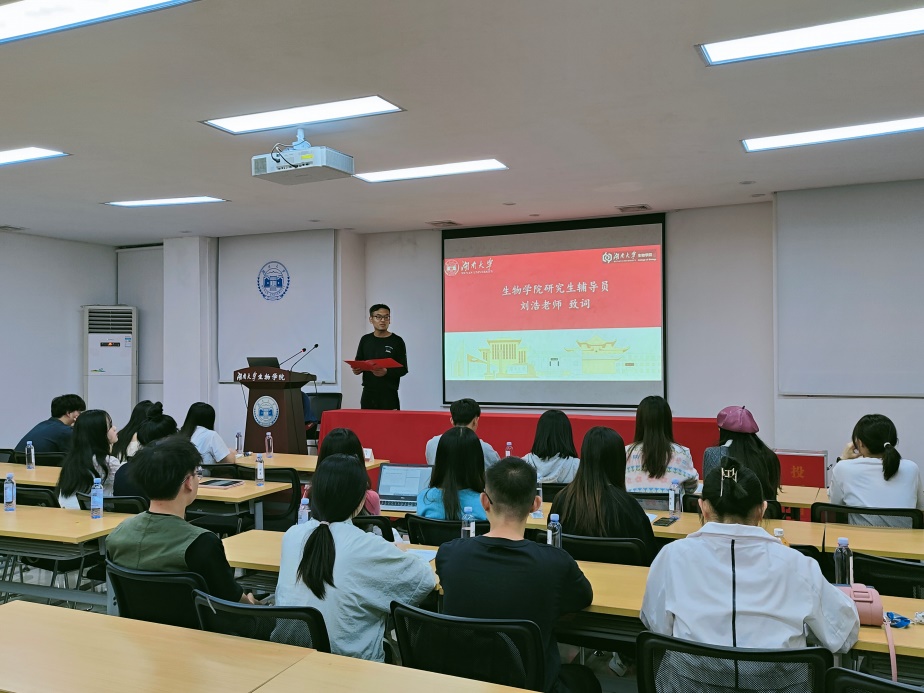 随后辅导员刘浩老师为大会致辞。他首先对加入第十三届研会的成员表示欢迎,并对研究生会干部和成员提出希望和建议。他提到,同学们作为色情