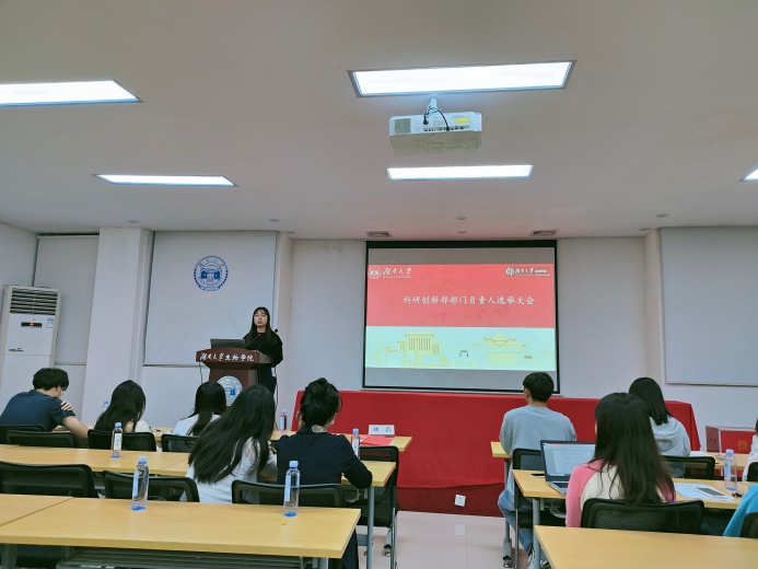 为促进部门之间的了解,研会的各位部长为大家介绍了各部门成员组成、部门职能以及后续工作计划。发展服务部部长杨琛晖、新媒体中心部长纪俏俏、科研创新部负责人陈海雁、活动部部长尹彩云以及调研部部长李瑞娜着重介绍了各自部门的工作职能,回顾了以往的主要工作并为下一阶段的工作建设做好了规划,加强了研会成员对研会工作动态的关注。