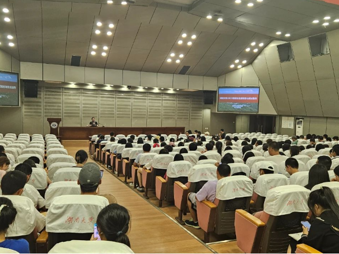 2023级新生入学教育讲座在逸夫楼举行,学院研究生辅导员冉晓芬、本科生辅导员于淼漪、2023级全体本研新生参加讲座。