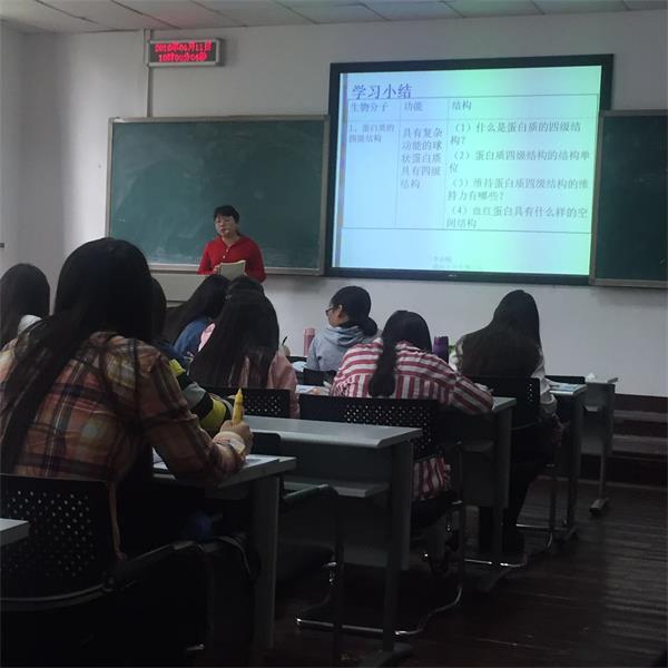 2016年4月11日上午10点在教学中楼204教室,在何晓晓副院长的带领下,十位新引进的教师和本学期参加教学比赛的教师汇聚一堂聆听了校教学比赛一等奖获得者李新梅老师讲授了《生物化学A》这门课程。李新梅老师的教学设计内涵丰富,教学方法灵活多样,重点突出,讲述内容深入浅出,适当列举实例,与学生互动良好。在李新梅老师的讲述下,枯燥无味的理论知识也变得简单易懂了。观摩课后,何院长,李老师与青年教师进行了交流,青年教师纷纷表示这是一次学习和借鉴优秀教师课堂教学方法的良机,激发了他们投身教学一线的热情,为他们今后如何上好课拓宽了思路。