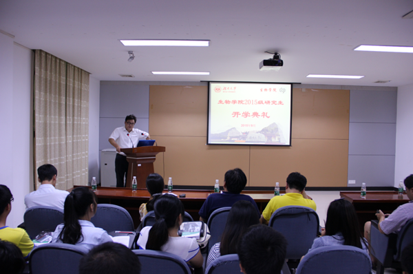 的2015级62名硕士研究生、12名博士研究生和研究生院隆平分院的20名硕士研究生、10名博士研究生参加开学典礼。典礼由学院党总支副书记高耀鸿老师主持。