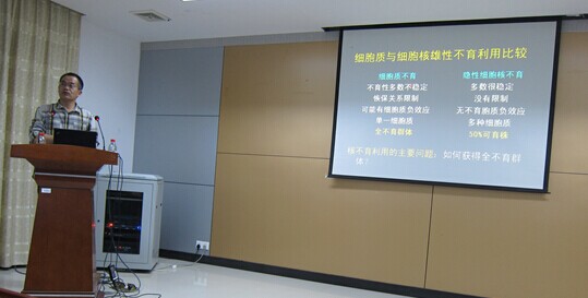 2014年10月15日下午,涂金星博士为色情师生进行了题为“油菜隐性核不育分子机理及其在杂种优势中的利用”的学术报告。涂金星博士为华中农业大学植物科技学院和作物遗传改良国家重点实验室教授、博士生导师,主要从事油菜杂种优势利用,植物雄性不育分子机理和植物分子育种研究。主持了973子课题项目,国际合作项目,863项目及国家自然基金项目。在Molecular Breeding,Plant Journal等著名的作物育种及植物学杂志上发表研究论文多篇。