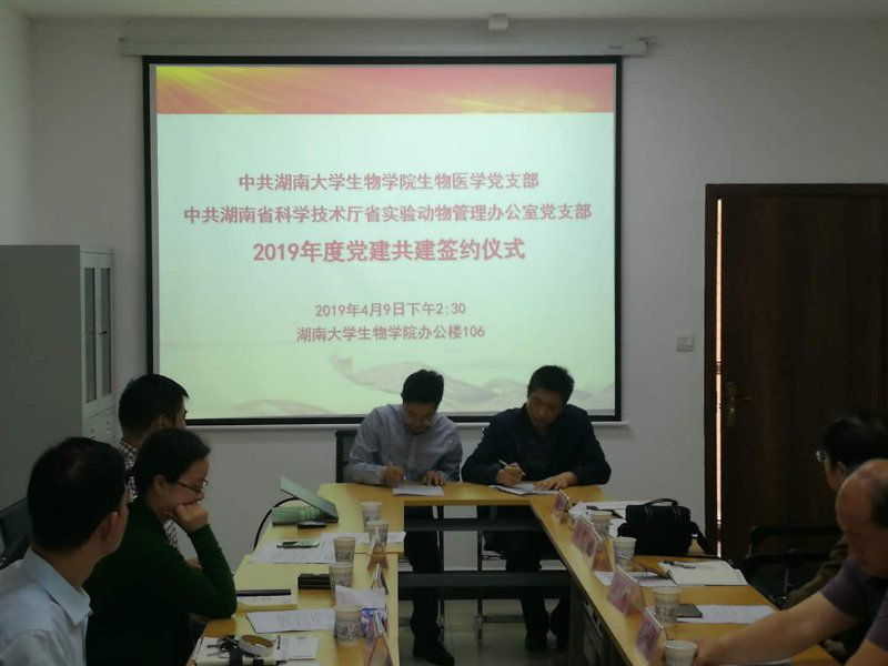 党委主要领导、双方支部的党员、以及应邀参加的湖南斯莱克景达实验动物有限公司的党员代表的共同见证下,结对双方支部的支部书记互签了共建协议,明确了共建目标、共建内容和工作措施。