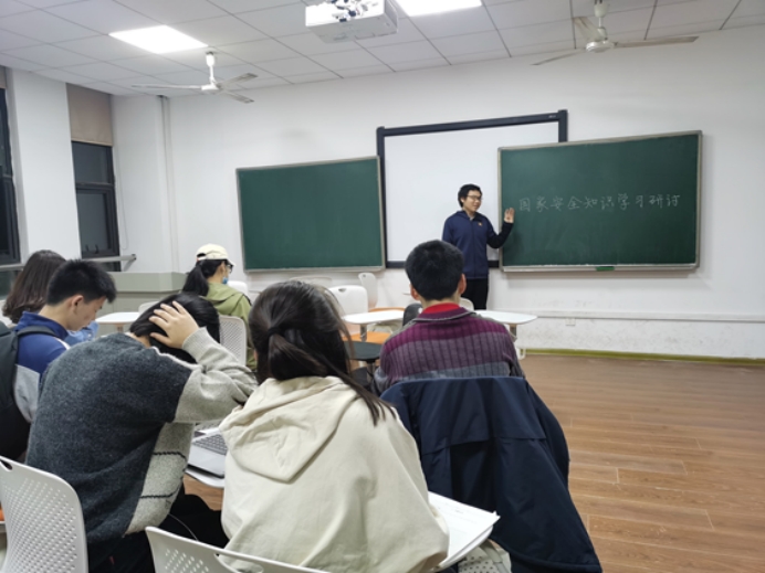活动开始,杨金锟同学介绍了“国家安全”的概念:所谓国家安全,是指国家政权、主权、统一和领土完整、人民福祉、经济社会可持续发展和国家其他重大利益相对处没有危险和不受内外威胁的状态,以及保障持续安全状态的能力。当代国家安全包括16个方面的基本内容,涉及到了全国上下各个层面和领域。