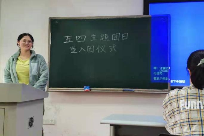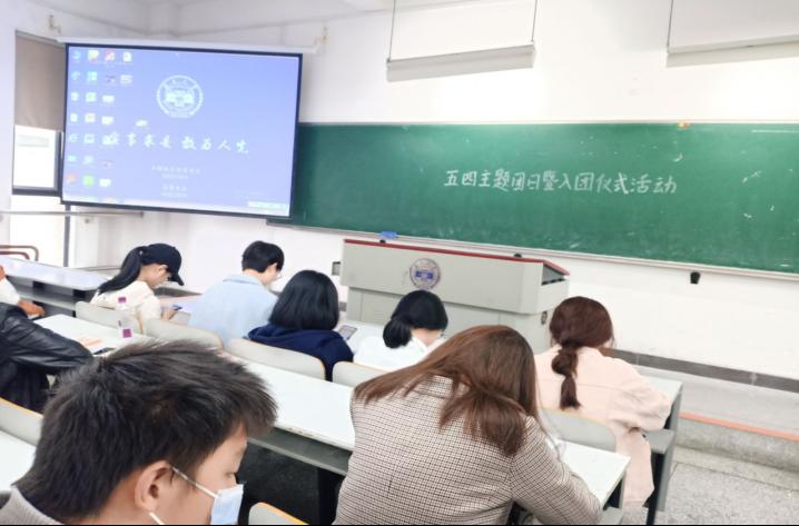 首先是入团仪式。各位团员在团支书的带领下庄严宣誓:“我志愿加入中国共产主义青年团,坚决拥护中国共产党的领导……为共产主义而奋斗”。