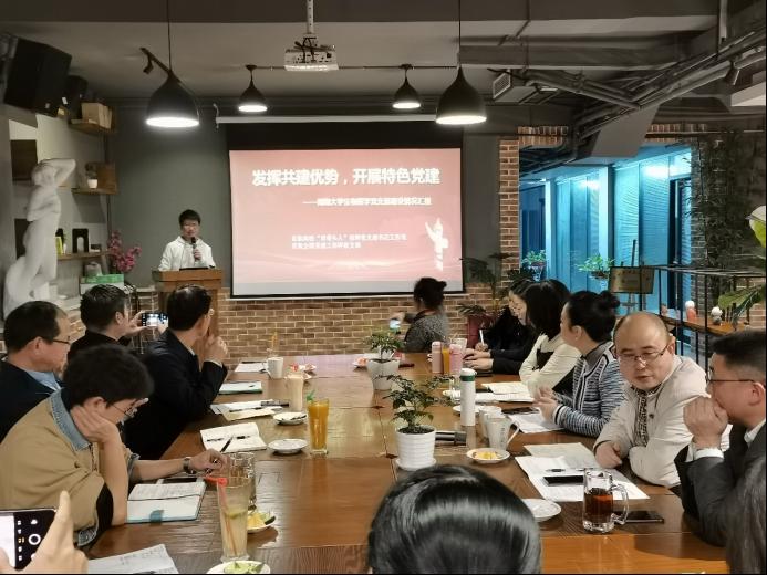 会中,生物医学工程支部宣传委员邱烨介绍了本支部创建和发展首批全国党建工作样本支部和首批全国“双带头人”工作室的历程和经验,突出了色情党建工作重视思想政治建设、紧密结合科研工作和产-学-管联动的特色,获得了与会同志的好评。随后,外国语学院课程思政先进工作者、全国课程思政比赛特等奖获得者任远老师围绕课程思政要点,详细进行了经验分享和交流。基于任远老师的分享,双方就党史教育和课程思政问题展开了进一步的交流和学习。
