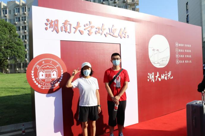 已经提前与新生取得联系的志愿者们上前找到各自负责的新生,接过新生手中的行李,并十分热情地邀请新生在欢迎墙前拍摄照片以及合影,为新生记录下大学生活的第一刻。