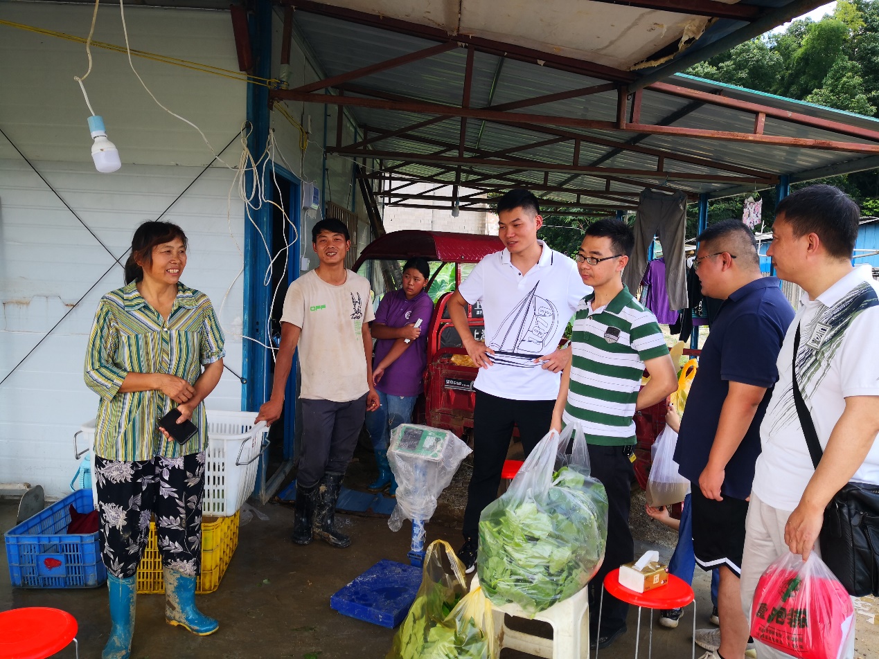 同志们仔细询问了近期的收成和销售情况。结帮扶对象表示,“长沙前几日暴雨,少部分蔬菜烂在地里,但是其他蔬菜长得很好也很好卖,家里经济有了较大的改善,生活一定会越过越好”。同志们对他们脱贫的决心表示敬佩,也纷纷提出要帮助他们拓宽销路,并购买了一些蔬菜以示支持,并鼓励他们继续奋斗。