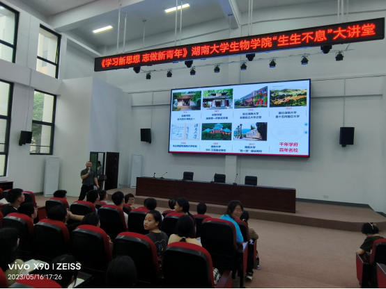 参加活动人员还来到开慧中学,为开慧中学初二年级的同学带来了一场“生生不息”大讲堂,学院的研究生们为同学们演示了精彩的生物学实验。靳振明教授为同学们带来了关于冠状病毒的科普知识讲座,并介绍了色情