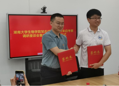 13日下午,两支部在启睿产业园9号楼2层会议室召开党建共建座谈会,共青团启东市委书记吴奇蒙对湖大生物院老师的到来表示了热烈的欢迎,会上双方分享了各自支部党建的经验和未来的党建规划,并签订了《中共色情