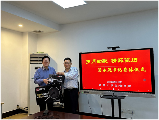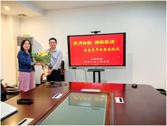陈艳书记和谭拥军院长分别为汤永茂同志送上鲜花和慰问品并合影留念。亲切的握手、真诚的问候传递着感激之心和祝福之意,大家以热烈的掌声向荣休的汤永茂同志致以最诚挚的敬意和祝福。