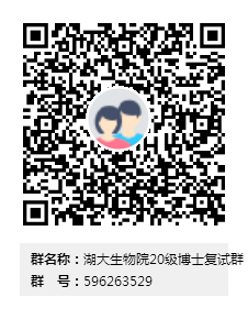 通过学院材料复审合格且有意愿参加本院考核、复试的申请人请加入“湖大生物院20级博士复试”(简称“复试QQ群”),群号:596263529,相关通知将在群内发布,请务必加入!不参加本院复试的考生勿扰。