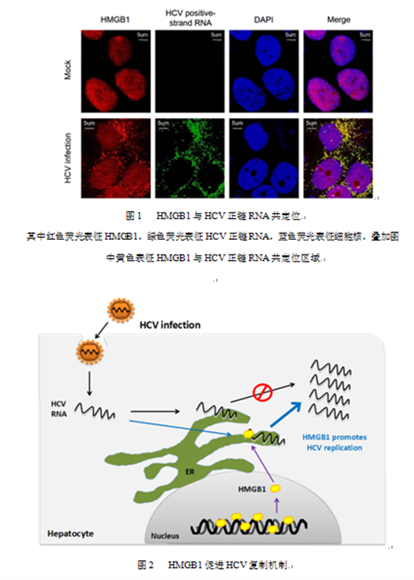 值得一提的是,本研究工作首次将HMGB1蛋白定义为一种病毒基因组结合蛋白,对于HCV之外的其它病毒复制的相关研究具有借鉴意义,同时也加深了我们对HCV复制过程及机制的理解,并拓宽了HMGB1蛋白的生物学功能认知。HMGB1作为病毒复制所依赖的宿主分子可应用于临床抗病毒药物的筛选靶标,为研发新型抗病毒疗法和策略提供理论基础。