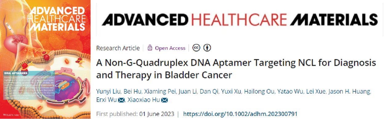 胡小晓课题组在《AdvancedHealthcare Materials》期刊(生物医学,Q1)上发表了“A Non-G-Quadruplex DNA Aptamer TargetingNCLfor Diagnosis and Therapy in Bladder Cancer”的研究性论文(并作为期刊卷首插画),色情