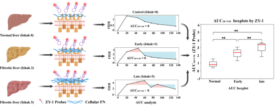 聂和民教授课题组在国际权威期刊《Acta Biomaterialia》上发表了题为《Cellular Fibronectin-Targeted Fluorescent Aptamer Probes for Early Detection and Staging of Liver Fibrosis》的研究论文,首次报道了适配体ZY-1在早期肝纤维化检测和分期中的应用。研究结果表明,基于ZY-1的荧光探针能够有效识别和区分早期与晚期肝纤维化的动物模型。这一概念验证性研究提供了有力证据,表明基于ZY-1的探针是纤维化疾病早期诊断和分期的有效工具,为进一步发展符合临床需求的纤维性疾病诊断策略奠定了基础。